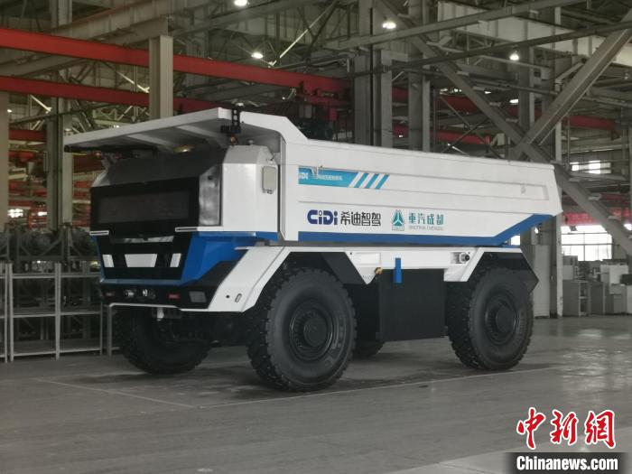 中國重汽集團成都王牌商用車有限公司與希迪智駕共同打造的無人礦卡。(單鵬 攝)