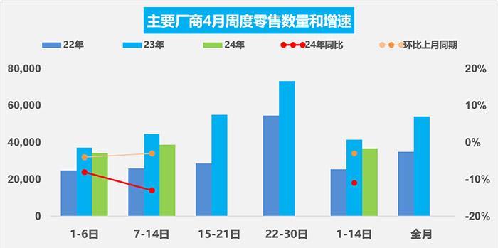 4月前兩周主要廠商零售銷量。數(shù)據(jù)來源:乘聯(lián)會(huì)
