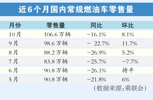 乘聯(lián)分會發(fā)布的數據顯示,今年10月常規(guī)燃油車零售106.6萬輛,環(huán)比增長8.1%。乘聯(lián)會秘書長崔東樹表示:“燃油車零售回暖是支撐車市整體向上的基礎之一,‘以舊換新’政策釋放的換購需求,更在一定程度上帶動燃油車銷量的增長?!敝档米⒁獾氖?,2025年補貼政策或仍將持續(xù),這對油車也是很好的提振銷量的機會。