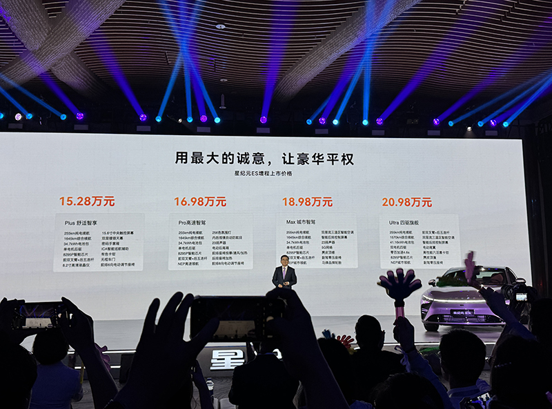 此次星紀(jì)元ES增程共推出四個(gè)版本,分別是Plus舒適智享15.28萬(wàn)元、Pro高速智駕16.98萬(wàn)元、Max城市智駕18.98萬(wàn)元、Ultra四驅(qū)旗艦20.98萬(wàn)元。上市期間下定并鎖單的用戶(hù)可享受七大權(quán)益,包含至高價(jià)值53000元的四大權(quán)益,分別為價(jià)值30000元NEP全場(chǎng)景智駕功能終身免費(fèi)使用的智駕禮(限Max城市智駕和Ultra四驅(qū)旗艦)、價(jià)值10000元的3年0息金融方案的金融禮、價(jià)值10000元免費(fèi)升級(jí)超享豪華包(限Pro高速智駕)的升級(jí)禮、價(jià)值3000元限時(shí)2000元升級(jí)價(jià)值5000元晨曦紅和極光紫個(gè)性外觀色的炫彩禮,還有質(zhì)保禮、流量禮、救援禮三大權(quán)益,將用戶(hù)權(quán)益最大化。