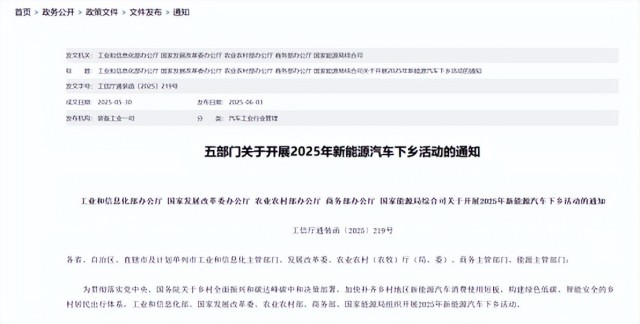 【環(huán)球網(wǎng)財經(jīng)綜合報道】6月3日,工業(yè)和信息化部等五部門聯(lián)合發(fā)布通知,開展2025年新能源汽車下鄉(xiāng)活動,以補齊鄉(xiāng)村新能源汽車消費短板,構建綠色出行體系。