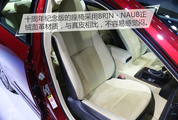 十周年紀(jì)念版凱美瑞將原本就已經(jīng)是真皮包裹的座椅更換了“新裝”,采用了最新研發(fā)的BRIN?NAUB材質(zhì)的正絨面革。與真皮材質(zhì)相比,這種全新的材料不容易有悶的感覺(jué),夏天的時(shí)候不會(huì)越坐越熱。冬天的時(shí)候,剛坐進(jìn)車?yán)镆膊粫?huì)感覺(jué)特別涼,這樣直接省去了再配坐墊的麻煩。BRIN?NAUB材質(zhì)還具有更好的彈性和延展性,長(zhǎng)期坐壓之后不易變形。