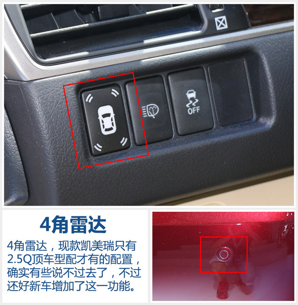 可以說(shuō)新車最大的一個(gè)升級(jí)亮點(diǎn),就是增加了豐田的Smart Stop智能節(jié)油啟停系統(tǒng)。省油原本就是凱美瑞的一大特質(zhì),好比筆者的7代2.5L車型目前在平均油耗僅為9個(gè)油(北京上下班使用)。增加S&S系統(tǒng)之后,凱美瑞的油耗將進(jìn)一步下降。
