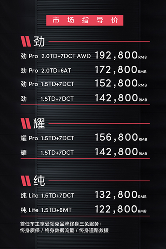 6月28日,領(lǐng)克02正式上市,售價區(qū)間為12.28-19.28萬元,共計8款車型。同時,所有購買領(lǐng)克02的首任車主,都將享受到終身免費質(zhì)保、終身免費數(shù)據(jù)流量、終身免費道路救援的三免服務(wù)。此外,領(lǐng)克01 PHEV也將于7月27日通過在線商城的方式對外銷售,共推出2款車型,補貼前預(yù)售價區(qū)間24-27萬元。
