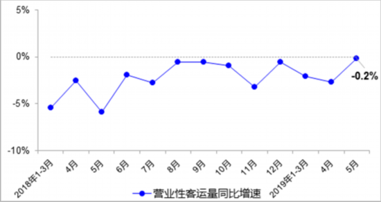 5月,完成營(yíng)業(yè)性客運(yùn)量14.5億人,同比下降0.2%,降幅較4月收窄2.5個(gè)百分點(diǎn),其中公路營(yíng)業(yè)性客運(yùn)量下降4.2%、水路客運(yùn)量增長(zhǎng)1.6%。