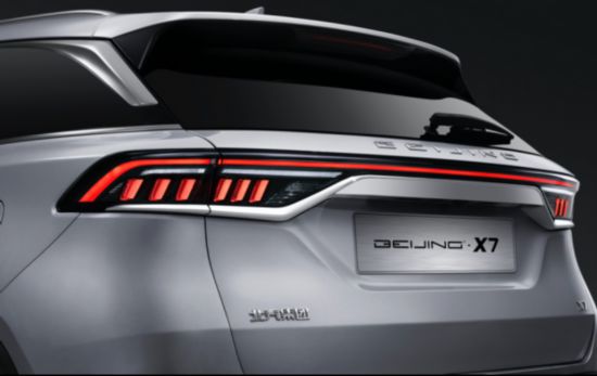 值得一提的是,BEIJING-X7在做到比例合適的同時也沒有放棄對細節(jié)的雕琢。前臉部分分區(qū)明顯,在梯形中網(wǎng)的周圍也有進氣口和霧燈的點綴,只是中網(wǎng)下部的結(jié)構(gòu)稍顯復雜,不過整體線條還是比較和諧。車尾部分的設(shè)計與前臉也相互呼應,大量平直線條塑造出了尾門的層次感,而采用平行結(jié)構(gòu)的尾燈光源也為車尾增加了更多細節(jié),看上去不乏味。