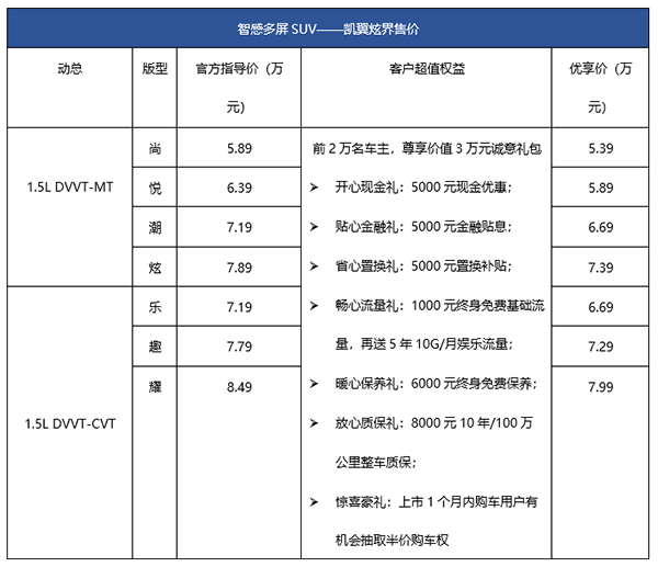| 凱翼炫界正式上市 售5.39萬—7.99萬 |