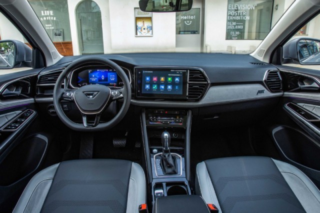 內(nèi)飾部分,捷達(dá)VS7 ABT版采用黑灰雙色設(shè)計,在中控臺右側(cè)帶有ABT標(biāo)識。此外,其座椅頭枕也加入了ABT專屬設(shè)計元素。