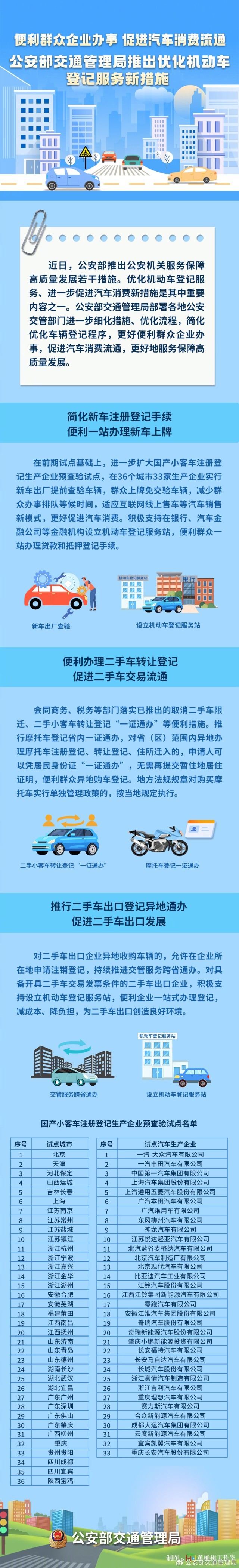 公安部交通管理局部署各地公安交管部門進一步細(xì)化措施、優(yōu)化流程,簡化優(yōu)化車輛登記程序,更好便利群眾企業(yè)辦事,促進汽車消費流通,更好地服務(wù)保障高質(zhì)量發(fā)展。