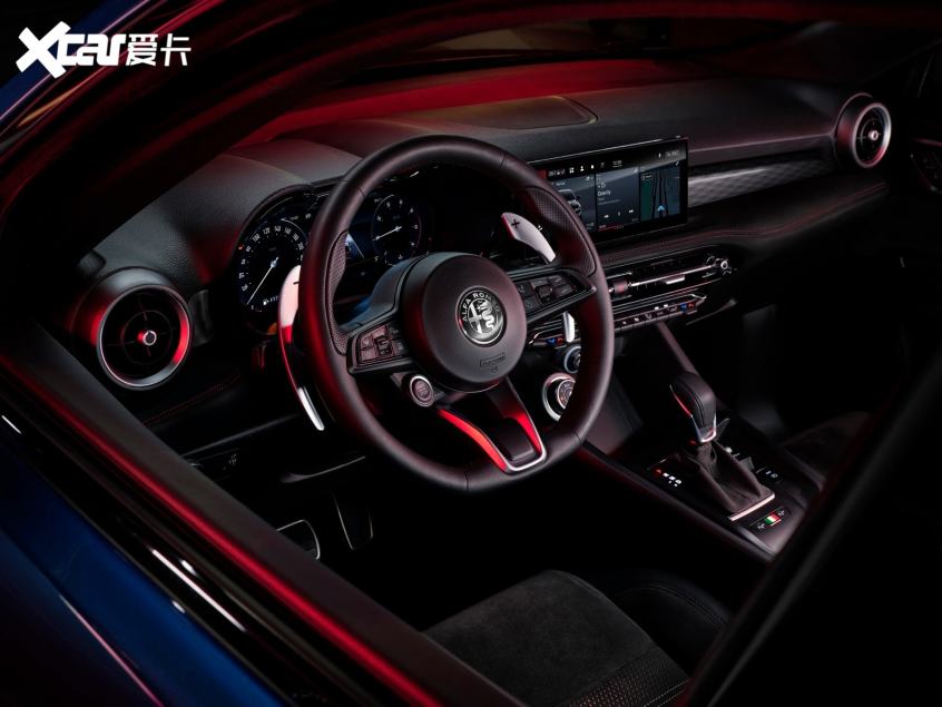 內(nèi)飾同樣延續(xù)了阿爾法·羅密歐家族的經(jīng)典設(shè)計(jì),啟動(dòng)按鈕設(shè)計(jì)在方向盤(pán)上,懸浮式中控屏尺寸為10.25英寸,并支持無(wú)線CarPlay和百度CarLife功能。