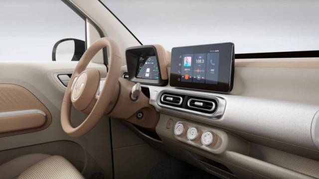 網通社快訊 宏光MINIEV第三代馬卡龍內飾官圖公布。新車將SMILEY美學繼續(xù)運用在內飾設計上,并提供以悅心為設計主旨的牛奶太妃、布朗尼黑兩款內飾配色可選。與此同時,該車還在空間表現(xiàn)、座椅材質、座艙配置等多個方面也進行升級,配備8英寸懸浮觸控娛樂中控屏和人體工學座椅等配置。