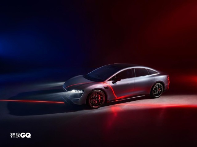 新車側(cè)面造型較為飽滿、流暢,略微向下傾斜的車頂線條搭配隱藏式車門把手和車窗邊框處的鍍鉻飾條進(jìn)行點(diǎn)綴時(shí)尚感較強(qiáng)。此外,智界S7還配備五輻式熏黑輪圈和紅色涂裝的高性能剎車卡鉗。車尾部分,修長的貫穿式LED尾燈組點(diǎn)亮后辨識(shí)度較強(qiáng),鴨尾式擾流板與寬大的亮黑色后包圍組件則增強(qiáng)了車尾的視覺層次感。