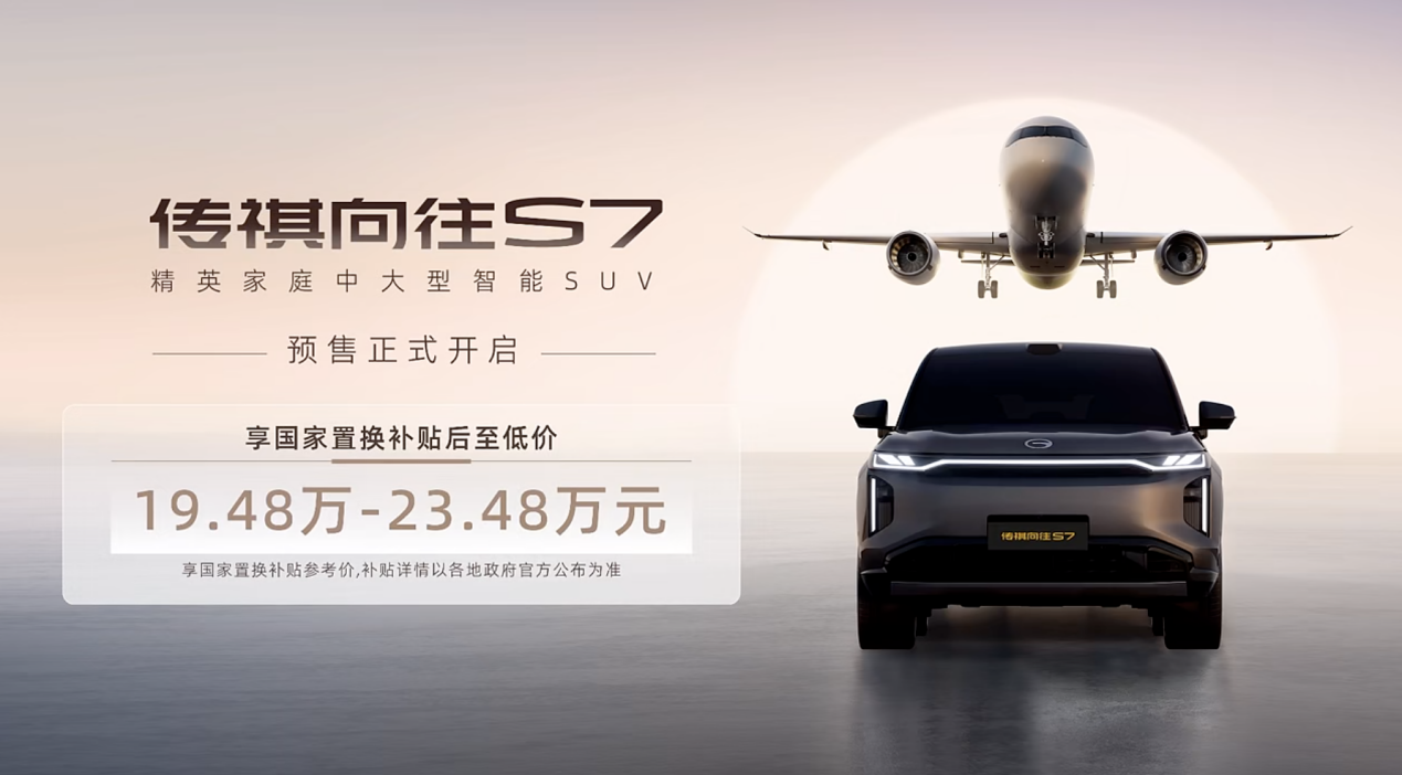 本次發(fā)布會跟C919同臺登場的傳祺向往S7,作為傳祺首款高階智駕車型正式開啟預(yù)售,預(yù)售價格(國補(bǔ)后)為19.48萬元-23.48萬元。作為尖兵,傳祺向往S7已經(jīng)亮劍,也意味著傳祺的向上之路正式開啟。