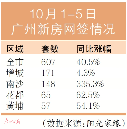 雙節(jié)期間廣州樓市亮點多多。最新數(shù)據(jù)顯示,雙節(jié)前5天,廣州市新房網(wǎng)簽為607套,同比上漲40.5%,創(chuàng)下近3年同期新高。其中,增城網(wǎng)簽171套,連續(xù)3年蟬聯(lián)“冠軍”,南沙、花都、黃埔等成交量均同比上漲超50%。有分析指出,雖然房企不斷加大折扣營銷、渠道合作和造節(jié)活動的力度,但四季度仍面臨較高的去化壓力,預(yù)計接下來房企將圍繞“雙11”和年終重大節(jié)點來展開營銷活動,其規(guī)模和折扣的力度均有望擴大,預(yù)計年底還會有一波新的成交高峰。
