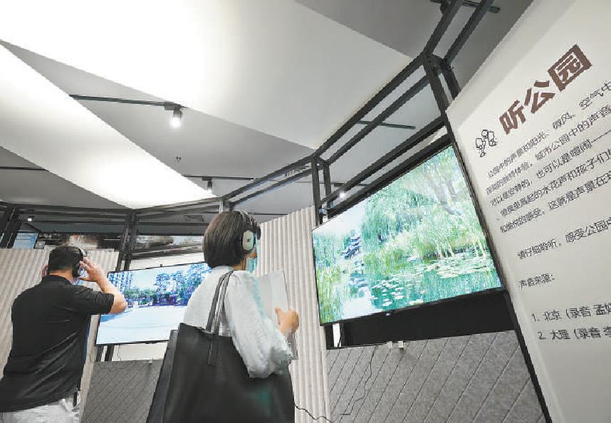 昨天,觀眾在北京城市建筑雙年展“未來(lái)之聲”展區(qū)體驗(yàn)(方非/攝)