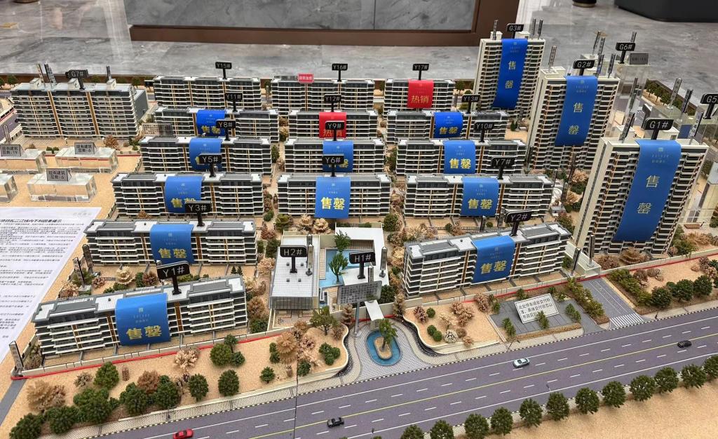 沈陽一處樓盤,售樓處的沙盤顯示大多數(shù)樓宇已售罄。新華社記者鄒明仲 攝