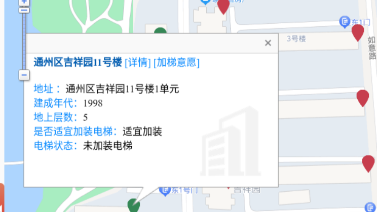 點擊地圖即可查看樓棟加梯的相關(guān)信息