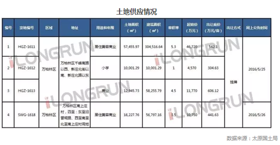 土地供應(yīng): 2016年5月第四周(5.23—5.29),本周有四宗土地供應(yīng)。
