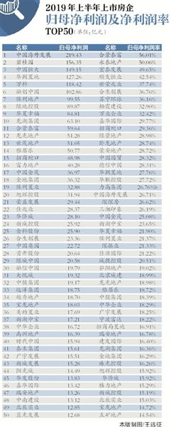 榜單說明 1、表格數(shù)據(jù)來源:上市企業(yè)公告、億翰智庫。歸母凈利潤是歸屬于母公司所有者凈利潤,歸母凈利潤率=歸母凈利潤/營業(yè)收入。 2、企業(yè):選取在香港和內地上市的營業(yè)收入和歸母凈利潤規(guī)模分別在3億和1億以上的房地產(chǎn)類上市公司,且業(yè)務集中分布在中國內地的地產(chǎn)公司。 3、部分公司年報本位幣為港元的,均按2019年6月30日的匯率換算成為人民幣。 為了反映上半年上市房企的利潤表現(xiàn),新京報聯(lián)合億翰智庫推出《2019年上半年上市房企歸母凈利潤率TOP50》榜單。由于單一考察歸母凈利潤率(歸母凈利潤/營業(yè)收入),會受非經(jīng)常性損益、營業(yè)外收入和投資物業(yè)重估等因素的影響,因此本榜單同時考察企業(yè)的歸母凈利潤規(guī)模,以期全面反映上市房企的盈利水平。 榜單顯示,超8成房企實現(xiàn)歸母凈利潤增速同比增長態(tài)勢,歸母凈利潤下降的企業(yè)中,除了中小企業(yè)占比較多,恒大、招商蛇口、遠洋、旭輝等規(guī)模較大的企業(yè)也在負增長的行列。 中小企業(yè)歸母凈利潤下降較多 上半年,行業(yè)政策趨嚴,融資環(huán)境收緊,中海地產(chǎn)依靠自身的央企背景優(yōu)勢,歸母凈利潤達249.42億港元,同比增長22.43%,也是唯一一家歸母凈利潤在上半年突破200億元的房企。 同時,去年同期超過中海、排名第一位的恒大,歸母凈利潤遭受腰斬式下降,為149.15億元,同比下降51.58%,排名從去年同期的第一降至第三。 今年上半年,歸母凈利潤超過百億元的房企還包括華潤置地、萬科A、融創(chuàng),歸母凈利潤分別為127.26億元、118.42億元、102.86億元。 值得注意的是,在銷售額排名前10名的房企中,新城控股上半年的歸母凈利潤為25.92億元,位于排行榜第24名,歸母凈利潤增速放緩,使得排名靠后。在銷售額排名TOP20的房企中,綠城、陽光城歸母凈利潤排名相對靠后,分別為第29名和44名。 億翰智庫指出,從TOP100的上市房企的歸母凈利潤增速情況來看,2019年上半年,TOP100家房企中,超8成房企實現(xiàn)歸母凈利潤增速同比增長態(tài)勢,歸母凈利潤TOP100企業(yè)加權歸母凈利潤增速為19.44%。 根據(jù)億翰智庫的統(tǒng)計數(shù)據(jù)顯示,歸母凈利潤實現(xiàn)較大增長的企業(yè)中,大發(fā)地產(chǎn)的歸母凈利潤增速為6781.88%,三湘印象、棲霞建設增速分別為934.86%、522.41%。 億翰智庫指出,企業(yè)的歸母凈利潤增速較大增長的原因大多是企業(yè)規(guī)模較小以及上半年結轉增加導致營業(yè)收入和凈利潤實現(xiàn)大幅增加,進而導致歸母凈利潤實現(xiàn)超大幅度增長。 同時,歸母凈利潤下降的企業(yè)中,除了中小企業(yè)占比較多,恒大、招商蛇口、遠洋、旭輝等規(guī)模較大的企業(yè)也在負增長的行列。例如,恒大的歸母凈利潤同比下降51.58%,招商蛇口同比下降31.2%。 部分大房企歸母凈利潤率排名靠后 從歸母凈利潤率來看,2019年上半年,合景泰富以56.01%的歸母凈利潤率繼續(xù)保持行業(yè)內的領先水平,其高利潤率的主要原因是投資物業(yè)公允價值損益較高,超過30億元。 值得注意的是,歸母凈利潤率排名靠前的多數(shù)房企,銷售額規(guī)模并不大,以地方性房企為主,部分房企涉足舊城改造、產(chǎn)業(yè)園等多元化業(yè)務。銷售規(guī)模較大的房企,歸母凈利潤率排名反而相對靠后。 碧桂園上半年歸母凈利潤率只有7.74%,在上市百強房企中排名墊底,而萬科A的歸母凈利潤率只有8.5%,排在第93名。由于碧桂園、萬科的凈利潤率均位于11%以上,而歸母凈利潤率較低,也說明這兩家公司的項目中,合作項目較多。 在銷售規(guī)模TOP20的房企中,歸母凈利潤排行前列的為招商蛇口、中海地產(chǎn)、金茂、華夏幸福等房企,歸母凈利潤率都達到20%以上,盈利能力較強。 同時,根據(jù)億翰智庫的統(tǒng)計數(shù)據(jù)顯示,2019年上半年,從TOP100的上市房企來看,加權平均歸母凈利潤率為12.10%,較2018年同期下降0.03個百分點,下降幅度不大。 此外,半數(shù)企業(yè)歸母凈利潤率較2018年同期有所增長,半數(shù)下降,因此總體保持平穩(wěn)。 億翰智庫預計,在行業(yè)“上有頂,下筑底”(即限房價與高地價)的背景下,預計未來利潤率水平將有下行空間。 榜首&榜尾 失而復得,中海穩(wěn)坐“利潤王” 在去年上半年錯失歸母凈利潤第一名之后,今年上半年,中海再次坐上“利潤王”的寶座,歸母凈利潤達249.42億港元,同比增長22.43%。 中海也是唯一一家歸母凈利潤在上半年突破200億元的房企,約是萬科A和融創(chuàng)中國的總和。此前“逆襲”的恒大由于歸母凈利潤下滑而居第三位,比中海少了約70億。 從歸母凈利潤率表現(xiàn)看,中海地產(chǎn)在上半年的表現(xiàn)也居于規(guī)模房企前列,歸母凈利潤率達到26.71%,大幅超過上市百強企業(yè)加權平均歸母凈利潤率12.10%,屬于規(guī)模房企中的“利潤王”。 碧桂園歸母凈利潤率“墊底” 在歸母凈利潤率的百強榜單中,作為龍頭房企,銷售規(guī)模、營收、利潤規(guī)模都居于前列的碧桂園,在歸母凈利潤率排行榜中“墊底”。 碧桂園上半年歸母凈利潤率只有7.74%。究其原因,一方面,由于碧桂園的營收增速高于歸母凈利潤增速;另一方面,也說明隨著合作項目的增加使得碧桂園的歸母凈利潤率走低。 此外,今年上半年,碧桂園銷售增速放緩。根據(jù)公告