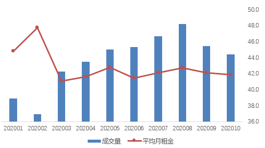 貝殼研究院數(shù)據(jù)顯示,10月貝殼重點城市租賃市場成交量環(huán)比持續(xù)下降,租金水平同比四連降達到近五年最低值。從成交量來看,10月租賃成交量環(huán)比下降10.5%,延續(xù)9月的下降態(tài)勢。從租金水平來看,2016-2020年的10月租金四連降,達到近五年最低。2020年10月重點城市平均月租金為41.8元/平米,環(huán)比下降0.6%,同比下降4.0%。