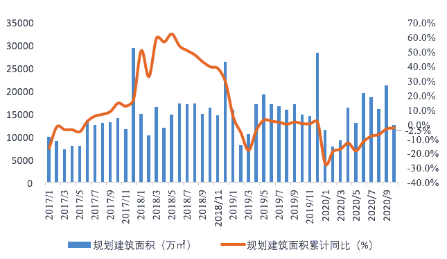 全國351城季度成交規(guī)劃建筑面積及累計同比 數(shù)據(jù)來源:貝殼研究院整理