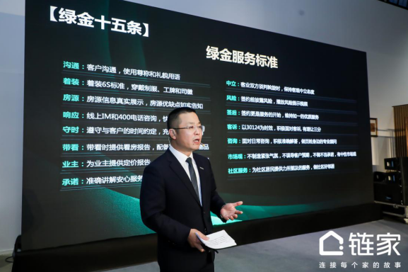 “接下來,我們會對這綠金服務標準進行拆解和細化,讓經(jīng)紀人在日常作業(yè)中遵循并真正做到。我們也會通過神秘客抽查等方式,確保這些服務標準能夠真正落地,讓鏈家的服務盡可能的標準化,減少經(jīng)紀人與經(jīng)紀人之間,城市與城市之間的服務方差。”鏈家COO王擁群表示。