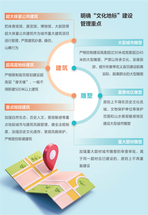 當(dāng)前,隨著城市發(fā)展,建設(shè)“文化地標(biāo)”成為城市構(gòu)筑文化空間、樹立城市形象的選擇。專家和讀者建議,為杜絕濫建“文化地標(biāo)”,一方面,要引導(dǎo)樹立正確政績觀,建立制度規(guī)范、健全約束機(jī)制;另一方面,要落實(shí)地方政府責(zé)任,強(qiáng)化審批監(jiān)管、明確建設(shè)管理重點(diǎn)領(lǐng)域。同時(shí),堅(jiān)持以人民為中心,讓城市“文化地標(biāo)”更有文化。