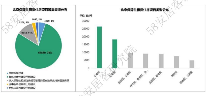 分城市來看,據(jù)58同城、安居客整理數(shù)據(jù)顯示,北京“十四五”期間,保障性住房供應占新增住房供應的比例達到52%。其中,保障性租賃住房規(guī)劃量最高,新增40萬套(間),占新增住房供應比例達到40%。根據(jù)北京已披露保障性租賃住房項目情況,主要以集體經(jīng)營性建設(shè)用地新建為主,而公寓型產(chǎn)品最多。目前,已披露項目供應集中于需求旺盛區(qū)域,如朝陽、豐臺、大興和通州。同時,項目開發(fā)主體中,國企和集體所有制企業(yè)的項目占比約80%,參與民企主要為聚焦租賃業(yè)務的龍湖、城家。