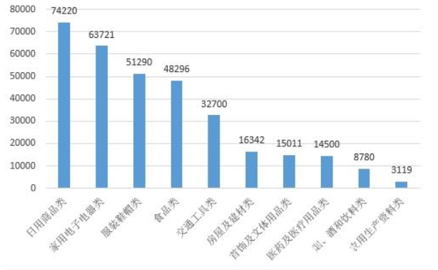 商品大類(lèi)投訴量圖(單位:件)(圖源:中國(guó)消費(fèi)者協(xié)會(huì)網(wǎng)站,央廣網(wǎng)發(fā))