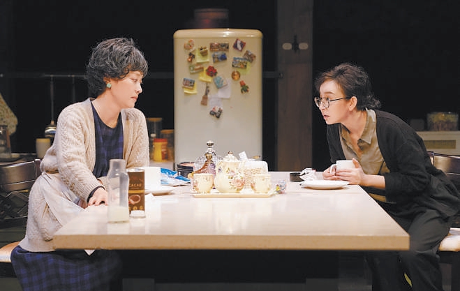 “《晚安,媽媽》沒有大的戲劇沖突,所有的矛盾都來自真實的生活,通過合情合理的人物關(guān)系和環(huán)環(huán)相扣的對話,去撥開日常生活之下翻滾的心?!碧茻钚稳荩@是一部沒有借助所謂的“手段”的作品,100分鐘的演出真誠動人,靠的是扎實的舞臺實景和兩位演員牽動肺腑的表演——冰箱里塞滿食物,杯子盛著冒白氣的熱巧克力,水龍頭能擰出自來水,沒有刻意的音樂和效果,整座舞臺如同真實生活的切面。演員需要在“做家務”的同時進行快節(jié)奏、高密度的對話,“手上不能停,但也不能攪戲,比如母女倆換沙發(fā)套的那一段,我們就練了很久很久。”唐燁說。