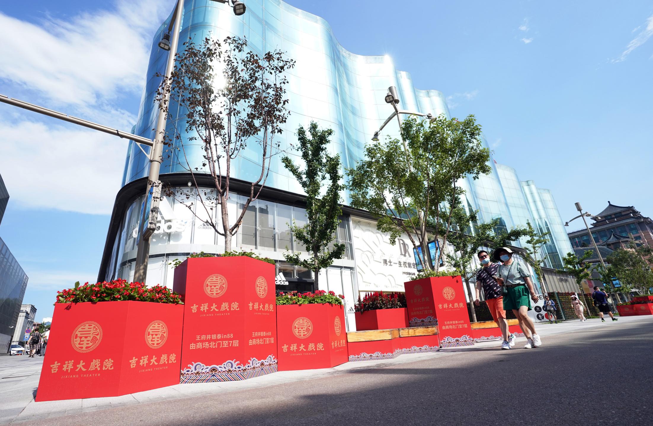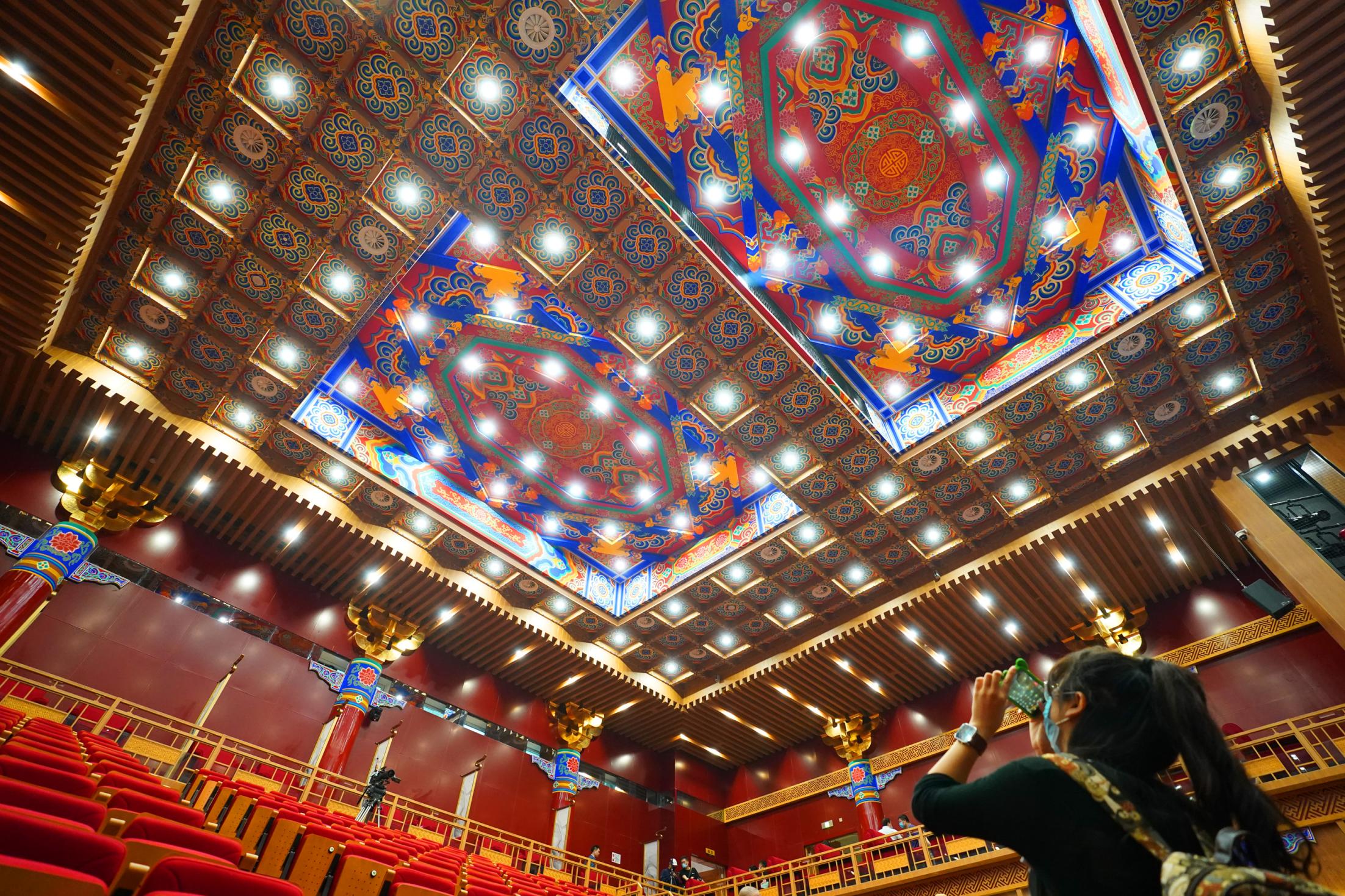 2021年7月9日,時(shí)隔28年,由北京市文化和旅游局、北京市國(guó)有資產(chǎn)經(jīng)營(yíng)有限責(zé)任公司共同出資,北京京劇院、北京市演出有限責(zé)任公司共同運(yùn)營(yíng)的吉祥大戲院重張啟幕。這座“藏身”于銀泰in88大廈7層、8層的空中戲院占地面積達(dá)4000平方米。乘電梯上樓,初入眼簾的前廳清新雅致,落地窗外可見(jiàn)王府井熙攘的人群與遠(yuǎn)處故宮、景山等古都風(fēng)光;劇場(chǎng)內(nèi),明清風(fēng)格古樸莊重,藻井彩繪繁復(fù)斑斕,傳統(tǒng)的“旋子彩繪”上增加了大量寓意吉祥的“萬(wàn)字不到頭”圖案,與戲院的名字彼此呼應(yīng)。