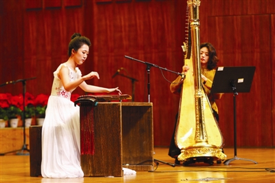 為慶祝天津音樂(lè)學(xué)院建校65周年,學(xué)院民樂(lè)系金鐘、文華、電視大賽金獎(jiǎng)音樂(lè)會(huì)昨晚在天津音樂(lè)學(xué)院音樂(lè)廳上演。本場(chǎng)音樂(lè)會(huì)由民樂(lè)系七名歷屆金鐘、文華、電視大賽金獎(jiǎng)獲得者攜多名優(yōu)秀教師與學(xué)生共同詮釋民族音樂(lè)的魅力。 本場(chǎng)音樂(lè)會(huì)由民樂(lè)系青年嗩吶演奏家王展展和青年二胡演奏家趙元春擔(dān)任導(dǎo)賞,帶領(lǐng)觀眾進(jìn)入民族音樂(lè)美妙的藝術(shù)氛圍中。音樂(lè)會(huì)由青年嗩吶演奏家胡悅祺吹奏的一首具有陜西風(fēng)格的獨(dú)奏曲《關(guān)中情》開(kāi)場(chǎng)。隨后,青年古琴演奏家孫灜和青年豎琴演奏家孫詩(shī)萌共同演奏的中國(guó)古代十大名曲之一《梅花三弄》曲調(diào)優(yōu)美、琴音繞梁;《彈詞新篇》是青年二胡演奏家趙元春創(chuàng)作的胡琴三重奏作品,由她傾情演奏,將觀眾瞬間帶入柔美的江南魚(yú)米之鄉(xiāng);青年竹笛演奏家李樂(lè)帶來(lái)《夜的速度》,演奏具有很強(qiáng)的律動(dòng)感,將傳統(tǒng)演奏技巧與西方音樂(lè)元素相結(jié)合,碰撞出不一樣的美;青年琵琶演奏家張雅迪演奏經(jīng)典名曲《楚漢之戰(zhàn)》,琵琶與打擊樂(lè)的合作帶觀眾穿越回楚漢兩軍垓下之戰(zhàn)的歷史瞬間;青年嗩吶演奏家王展展演奏的《大笛絞》,柔美中不乏張力,絲絲入扣,耐人回味;青年阮演奏家申婷帶來(lái)具有震撼聽(tīng)覺(jué)體驗(yàn)的作品《山歌》。 另外,兩首室內(nèi)樂(lè)作品也在本場(chǎng)音樂(lè)會(huì)上精彩呈現(xiàn)。《敦煌》是一首以絲綢之路上的敦煌為主題創(chuàng)作的作品,觀眾聽(tīng)罷仿佛穿越到敦煌興衰起伏的歷史長(zhǎng)河之中?!秵罟艆冉瘛肥且皇追浅:寐?tīng)的吹打樂(lè)合奏曲,演奏家的演繹將現(xiàn)場(chǎng)氛圍烘托得十分熱烈,觀眾被美妙的旋律所征服,現(xiàn)場(chǎng)的掌聲、歡呼聲此起彼伏。 本場(chǎng)音樂(lè)會(huì)的作品風(fēng)格多樣,展現(xiàn)了我國(guó)不同地域文化之下民族音樂(lè)的魅力。正值“全國(guó)音樂(lè)藝術(shù)院校校長(zhǎng)論壇”在天津音樂(lè)學(xué)院舉辦,來(lái)自全國(guó)藝術(shù)院校的校長(zhǎng)們觀看了本場(chǎng)音樂(lè)會(huì)并給予高度評(píng)價(jià)。此外,音樂(lè)會(huì)的線上直播也贏得了廣大觀眾的青睞與好評(píng)。 (責(zé)任編輯:盧相?。?/span> |