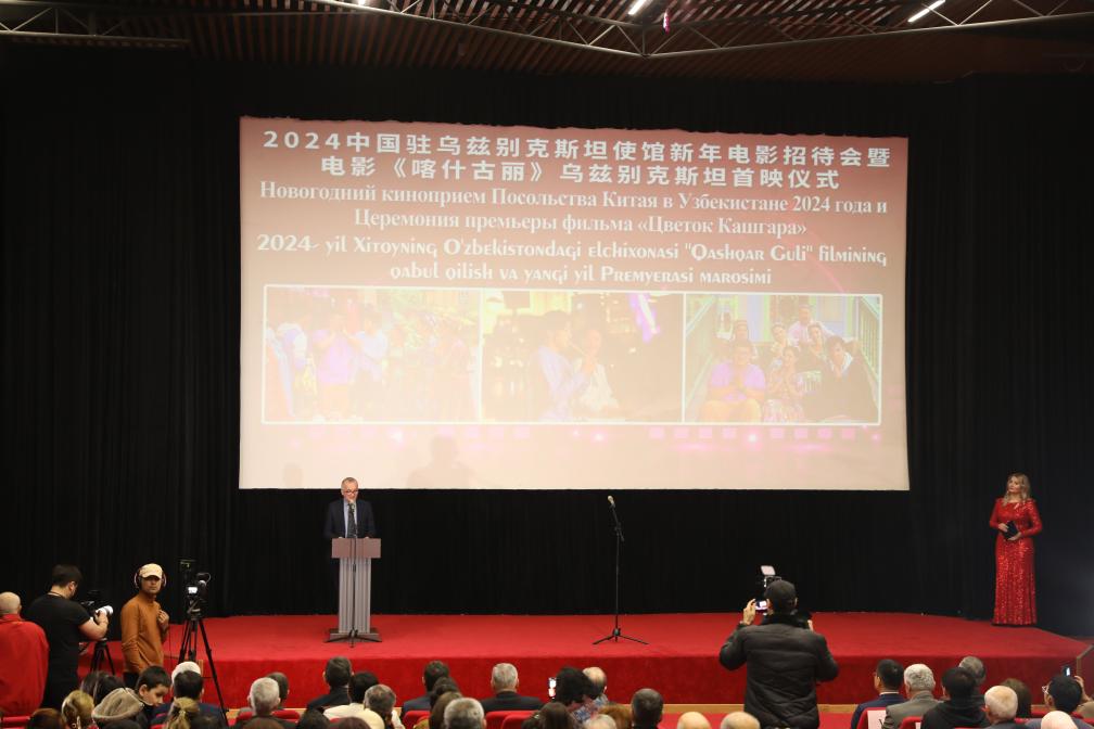 這是1月5日在烏茲別克斯坦首都塔什干拍攝的電影《喀什古麗》首映式。