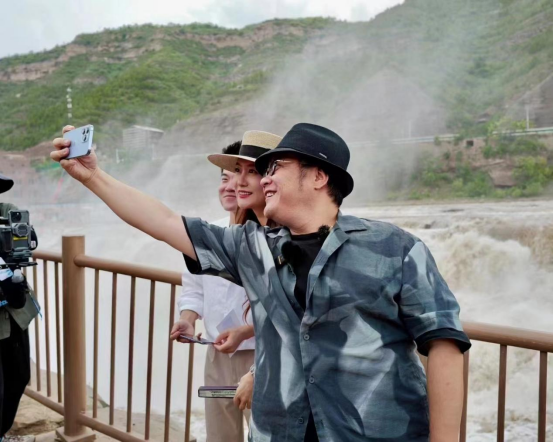 6月13日,二人轉(zhuǎn)戰(zhàn)臨汾吉縣,與同樣應(yīng)邀而來的導(dǎo)演寧浩相會于壺口瀑布,共同為家鄉(xiāng)文化代言、為山西文旅發(fā)聲。身為臨汾人,卻是第一次來到壺口瀑布,被這座有“黃河心臟”之稱的瀑布深深震撼的譚晶“秒變游客”,不停地與翻涌奔騰的黃河合影、自拍,感受家鄉(xiāng)山水的波瀾壯闊之美。