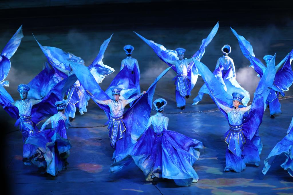 9月20日晚,演員在貴州省雷山縣大塘鎮(zhèn)表演苗族歌舞詩劇《仰歐?!?。新華社記者 楊文斌 攝