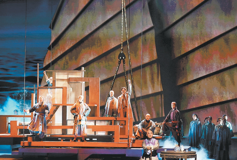作為跨越時(shí)間、地理與文化的超大體量文化遺產(chǎn),京杭大運(yùn)河積淀了深厚豐富的文化內(nèi)涵,成為文藝創(chuàng)作取之不盡、用之不竭的創(chuàng)作源泉。但是將徐則臣30萬(wàn)字的小說(shuō)原著改編成舞臺(tái)劇,并不是一件容易的事。充滿(mǎn)難度和挑戰(zhàn)的,不僅是要將文學(xué)語(yǔ)言巧妙轉(zhuǎn)化為舞臺(tái)語(yǔ)言,讓小說(shuō)中充滿(mǎn)想象力的人物和情節(jié)鮮活生動(dòng)地出現(xiàn)在觀(guān)眾面前;更重要的是,如何在保留原著厚重文化精神和飽滿(mǎn)情感能量的基礎(chǔ)上,通過(guò)戲劇的力量延展出更強(qiáng)大的思想與情感張力,帶給當(dāng)代觀(guān)眾更深的思考與感動(dòng)。