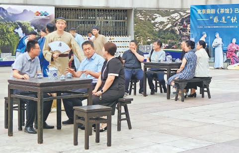 “喲,這位爺,您里邊請!”昨天下午,北京北站下沉廣場上,一位位身著戲服的曲劇演員登場,邀請過往行人移步至一旁的“茶館”品茶。旅客被演員帶入沉浸式表演中,現(xiàn)場不時發(fā)出笑聲和喝彩聲。原來這是北京市重點站區(qū)管理委員會北站辦與北京市曲劇團(tuán)聯(lián)合策劃的“黨建引領(lǐng)·京韻暢行”快閃活動。此次快閃活動通過沉浸式表演,將北京曲劇《茶館》片段融入旅客和市民的出行場景。