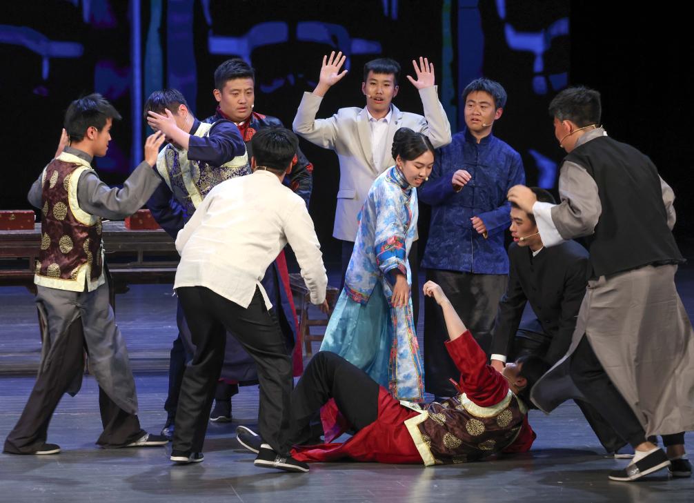 當(dāng)日,中國(guó)人民大學(xué)附屬中學(xué)分校戲劇實(shí)踐課程開(kāi)展成果展示,高中學(xué)生們?cè)诒本﹪?guó)安劇院演出大型四幕話劇《吶喊》,生動(dòng)演繹了魯迅筆下阿Q、孔乙己、祥林嫂等眾多經(jīng)典形象。