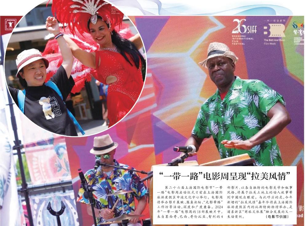 第二十六屆上海國際電影節(jié)“一帶一路”電影周啟動儀式日前在上海國際旅游度假區(qū)申迪文化中心舉行。電影周將舉辦影片展映、圓桌論壇、“光影帶路”工作坊等活動,深度和廣度兼?zhèn)洹?024年“一帶一路”電影周的18部展映片中,來自墨西哥、巴西、哥倫比亞、智利的4部影片,以各自獨(dú)特的電影美學(xué)和敘事風(fēng)格,將屬于拉美土地上的動人故事帶到中國觀眾眼前。與此呼應(yīng)的是,今年新增的“拉美風(fēng)情”嘉年華將在上海國際旅游度假區(qū)內(nèi)的比斯特購物村舉辦,是浦東新區(qū)“商旅文體展”融合發(fā)展的又一生動案例。 (電影節(jié)供圖)