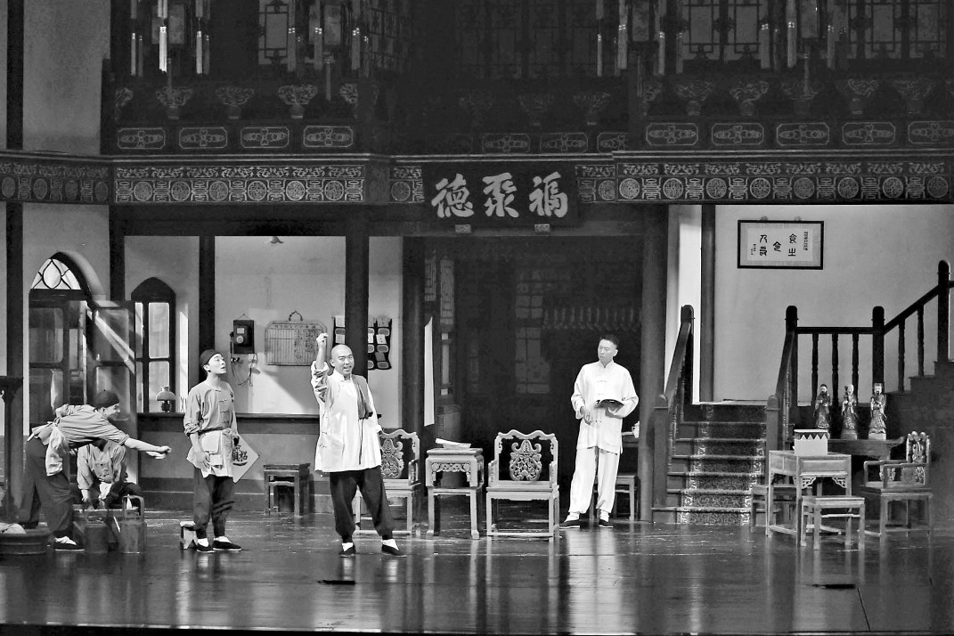 作為一部反映一百多年前生活的作品,導(dǎo)演閆銳認(rèn)為,要“找回歷史的記憶和時代的道”,在他看來,“這版中的人物除了鮮活之外,尊嚴(yán)也是著力要展現(xiàn)的,我們也是在這個主旨下深耕人物,把握每一個細(xì)節(jié),力求在經(jīng)典的基礎(chǔ)上展現(xiàn)出年輕人的狀態(tài)。這部作品要向觀眾呈現(xiàn)當(dāng)時的生活畫卷,演員們不僅要還原當(dāng)時的生活,更要用當(dāng)時的語言方式和韻律來表達(dá)?!贝溯喸傺?,導(dǎo)演顧威提出“要不丟人、不丟范兒、不丟對傳統(tǒng)的尊重”。于是,新一輪的塑造仍要在人物上下功夫,同時對于作品的理解也要有新體會?!叭鐒≈械慕Y(jié)尾‘天下沒有不散的筵席’這樣具有智慧和哲思的臺詞,為什么由修鼎新這個角色說出,帶有作者怎樣的思考,如何突出其中的哲思和況味,在這一輪的排演中,我們都進(jìn)行了重新的解讀和提升。”