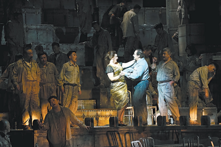 頗有年代感的大皮箱擺了一地,臺(tái)球桌橫陳潦草,酒杯滿(mǎn)天亂飛,酒館老板、礦工、盜匪粉墨登場(chǎng),一派粗糲的莽荒氣質(zhì)撲面而來(lái),如同一部酣暢淋漓的西部大片。上周末,國(guó)家大劇院制作的普契尼歌劇《西部女郎》正在緊張彩排,7月23日至27日,著名指揮家卡羅·利茲將執(zhí)棒國(guó)家大劇院管弦樂(lè)團(tuán),攜手中、美、意三國(guó)藝術(shù)家組成的創(chuàng)演陣容,把這部描寫(xiě)加利福尼亞淘金熱的歌劇帶上2024國(guó)家大劇院歌劇節(jié)的舞臺(tái)。