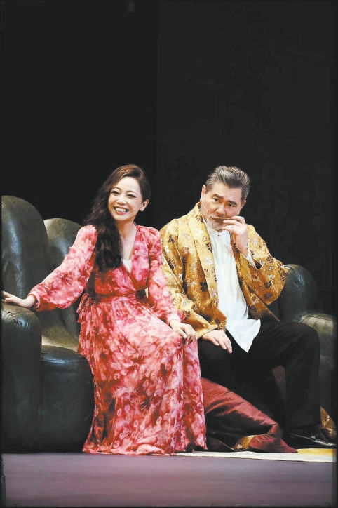 舞臺的時間畢竟有限,不能雨露均沾到每個角色身上,然而《鱷魚》團隊對次要人物的描摹與創(chuàng)作,也展現(xiàn)出只有經(jīng)驗成熟、全情投入的劇團才能抵達的高度。趙太太的角色占比篇幅不大,“未見其人,先聞其聲”的獰笑,卻給觀眾留下很深的印象。王菁華采用了漫畫式的表演技巧,激活了人物對他人悲喜不管不顧的冷漠狀態(tài),貪小便宜的舉動又顯示出三分“壞得可愛”,讓人忍不住聯(lián)想這個寥寥幾筆的女人背后的故事:她也曾是容貌姣好、手段狠辣的美人,如今只能在牌桌上靠手氣度日子,在他人家里聽墻角、編撰故事來發(fā)財。飾演秘書的李宗雷,在《紅樓夢》“葫蘆僧亂判葫蘆案”中,找到了下位者在權勢面前左右逢源、見風使舵的坐姿、表情等特征,加以模仿,竟真的讓人看起來又氣又畏。