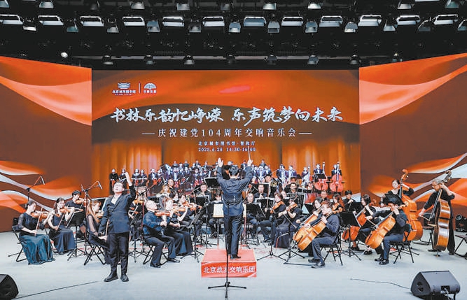 日前,“書林樂韻憶崢嶸,樂聲筑夢向未來”慶祝建黨104周年交響音樂會在北京城市圖書館舉行。