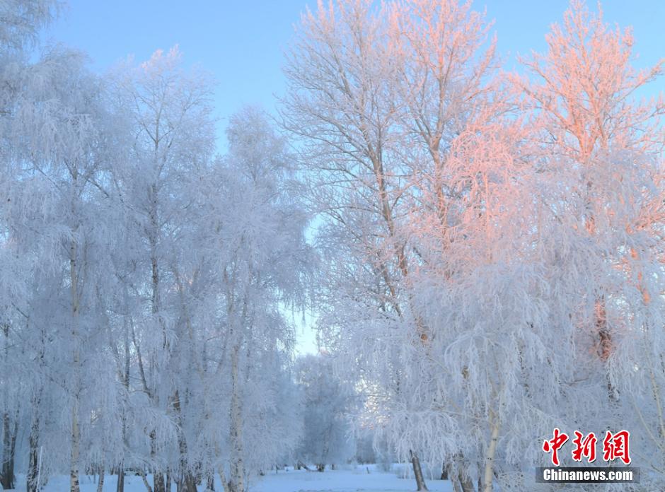 連日來,新疆阿勒泰地區(qū)遭遇十年來罕見強(qiáng)降雪,雪后初霽,氣溫漸降。1月4日,受超低溫天氣的影響,阿勒泰哈巴河白樺林出現(xiàn)大面積霜掛美景,晶瑩剔透,潔白無瑕,銀裝素裹,成為一道道美麗的風(fēng)景線。 謝師民 攝