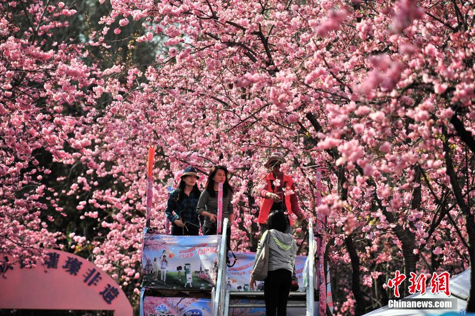 近日,昆明圓通山的櫻花和海棠花逐漸進(jìn)入盛花期,引來眾多市民踏春趕花潮。圓通山工作人員介紹,受此前寒潮的影響,海棠和櫻花花期推遲,但顏色比往年更艷麗且花量增加。中新社記者 劉冉陽 攝