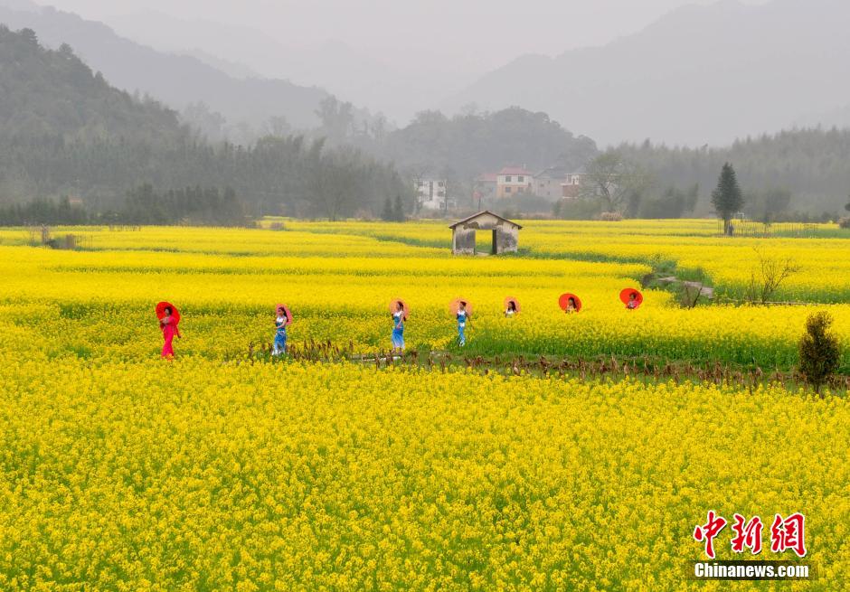 3月20日,江西省德興市??阪?zhèn)杜村婦女在田間花?!白咝恪?。當(dāng)日,江西德興市??阪?zhèn)杜村一批家庭婦女以千畝油菜花海為舞臺(tái),展示自己的才藝形象,希望宣傳家鄉(xiāng)的自然生態(tài)與人文歷史,擴(kuò)大旅游知名度和影響力。德興市??阪?zhèn)杜村交通便利,自然風(fēng)光優(yōu)美,村內(nèi)有歷史古跡和名木古樹(shù)。 胡敦煌 攝 |