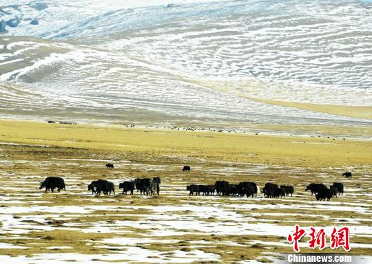 圖為“春雪牧歌圖”中成群結(jié)隊的牦牛。牛志恩 攝