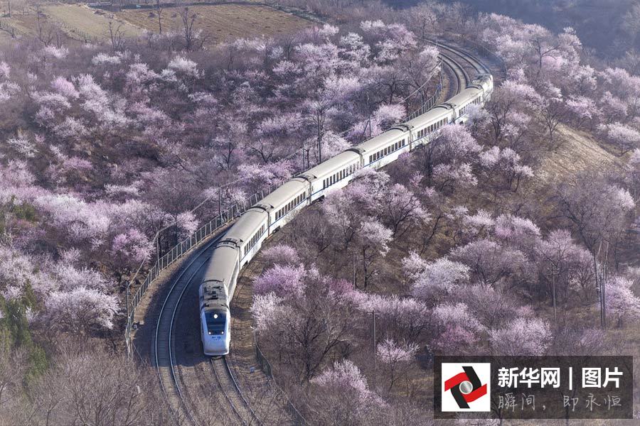 和諧號(hào)穿越居庸關(guān)花海 美到窒息