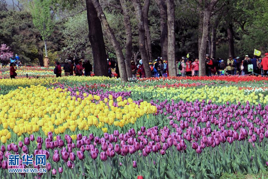 北京植物園內(nèi)盛開的郁金香花(4月11日攝)。近日,北京植物園內(nèi)的郁金香競相開放,吸引眾多游人前來觀賞。 新華社記者 李明放攝