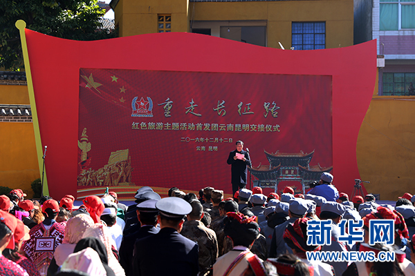 新華網(wǎng)昆明12月13日電(記者 韓攀)12月12日,“重走長征路”紅色旅游主題活動首發(fā)團云南昆明交接儀式在尋甸柯渡丹桂村紅軍長征柯渡紀念館舉行。本次主題活動由國家旅游局主辦,是在中國工農(nóng)紅軍長征勝利80周年之際,通過紀念紅軍長征歷史、緬懷先烈,宣傳長征精神,推廣紅色旅游線路,同時充分展示長征沿線地區(qū)旅游業(yè)及經(jīng)濟發(fā)展成就。